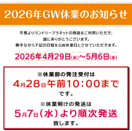 休業期間中にいただいた、お問合せ・ご注文については営業開始日以降に順次対応させていただきます。
